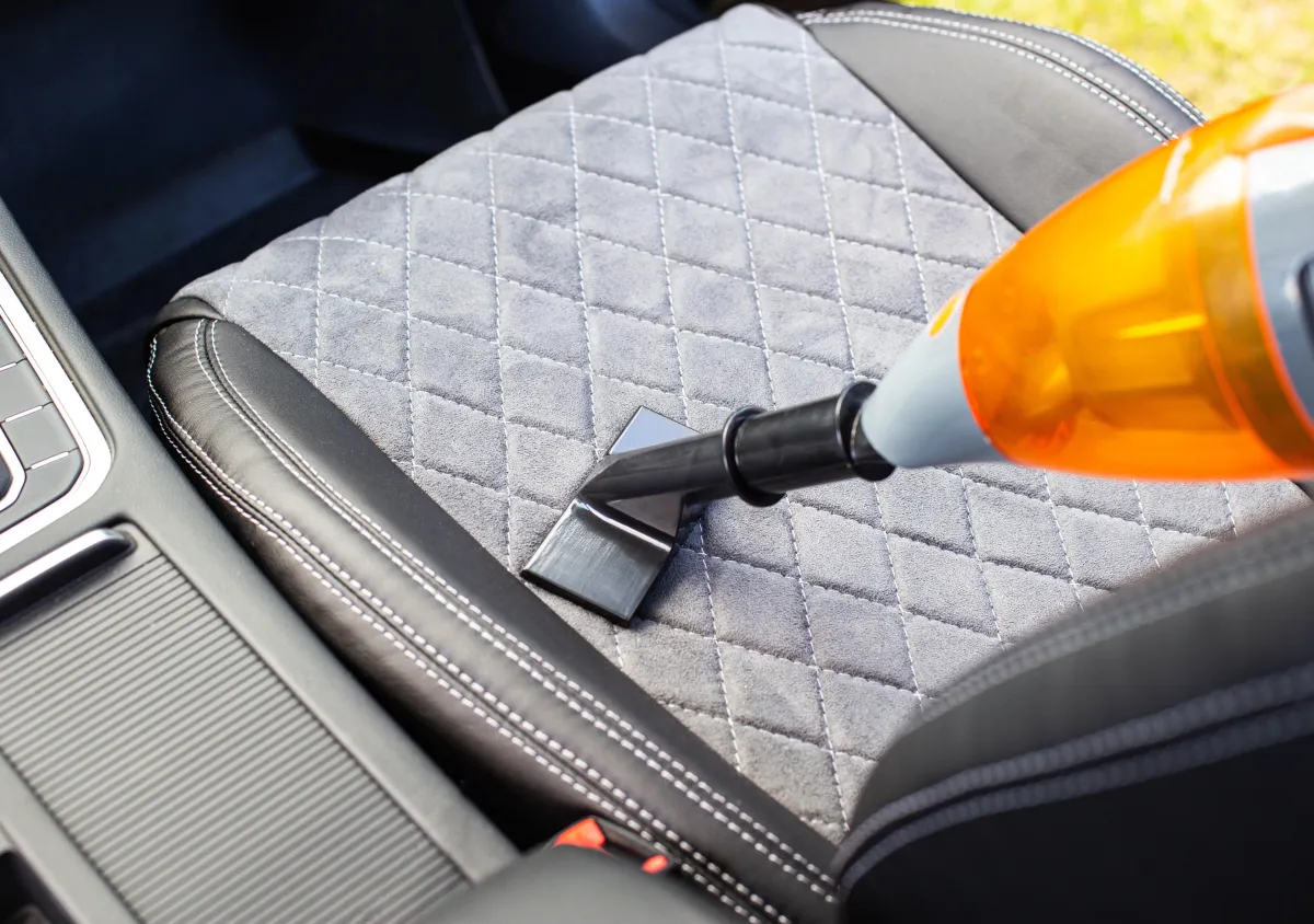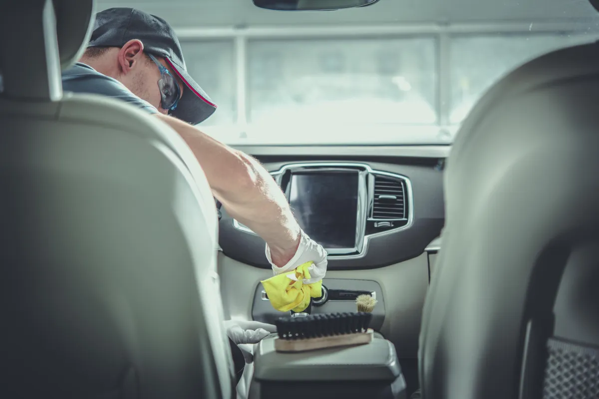 Shampoo and extraction for carpets, mats, and seats, with leather care, interior wipe-down, and odor neutralization.